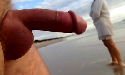 Public erection CFNM beach encounter between doll and male exhibitionist