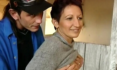 Mature, dark haired woman with big melons is having fuck-fest with a much younger guys
