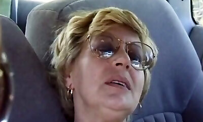 Mature Pauline fingers her old pussy in a car and gets ravaged