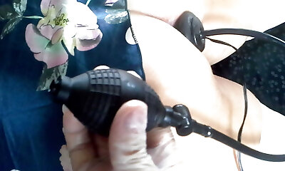 nippleringlover horny milf tucking objects in extreme stretched pierced nipples playing with pierced pussy outdoors