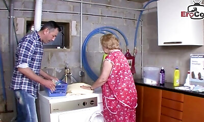 German aged Granny Erika 73 seduce to Pound in kitchen by Young Guy